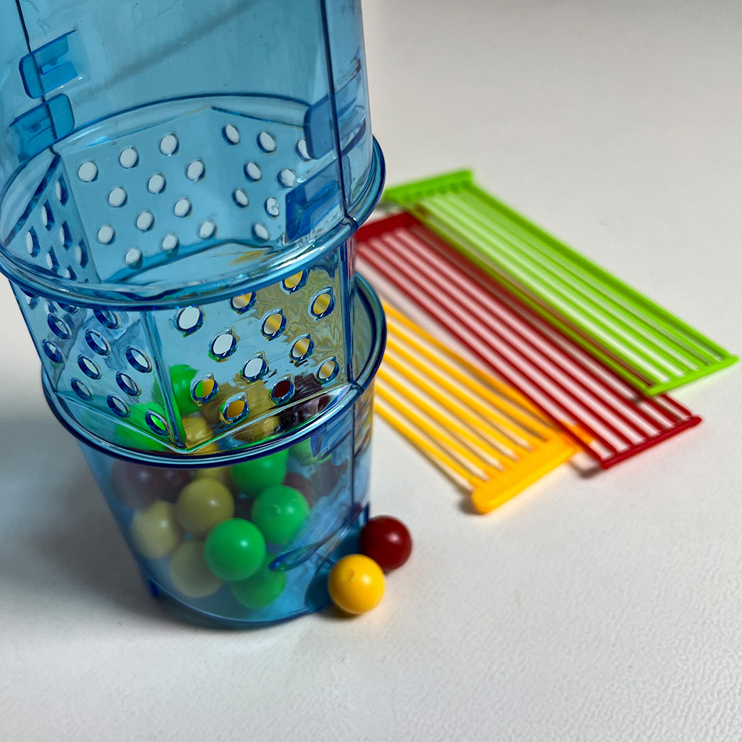 بازی فکری پلانک، Plunk Game یک بازی دو نفره جذاب و مهارتی است که قوانین سادهای دارد. این بازی شامل یک محفظه شیشهای، ۲۱ چوب رنگی و ۲۴ توپ رنگی است. هدف این است که چوبها را طوری در سوراخهای محفظه قرار دهید که توپها به پایین نیفتند. هر بازیکن نوبت به نوبت چوبها را به استراتژی خود در محفظه قرار میدهد و سپس توپها را رها میکند. در پایان، بازیکنی که کمترین تعداد توپ را به زمین بیندازد، برنده میشود. این بازی نه تنها سرگرمکننده است، بلکه به تقویت تفکر استراتژیک و مهارتهای حرکتی نیز کمک میکند. توضیحات کلی بازی پلانک، یک تجربه هیجانانگیز و آموزنده برای کودکان و بزرگترهاست. این بازی مهارتی میتواند ساعات سرگرمی را برای شما و دوستانتان به ارمغان بیاورد. با استفاده از چوبهای رنگی و توپهای شاداب، شما به دنیای چالشها و استراتژیها وارد میشوید. اجزای بازی محفظه شیشهای: محفظهای شفاف که به شما اجازه میدهد تا مشاهده کنید که چطور توپها و چوبها در آن قرار میگیرند. ۲۱ چوب در ۳ رنگ: چوبها در سه رنگ مختلف طراحی شدهاند که زیبایی و جذابیت بیشتری به بازی میبخشند. ۲۴ توپ در ۳ رنگ: توپها نیز در رنگهای مختلف برای تنوع بیشتر در بازی طراحی شدهاند. راهنمای بازی: شامل قوانین و نکات مفید برای بهتر بازی کردن. قوانین بازی آمادهسازی: چوبها را در سوراخهای محفظه قرار دهید. سعی کنید شبکهای از چوبها درست کنید. رهاسازی توپها: توپها را از بالای محفظه رها کنید و ببینید چطور در بین چوبها قرار میگیرند. نوبت بازی: هر بازیکن نوبت به نوبت چوبها را از سوراخهای محفظه بیرون میآورد. برنده: بازیکنی که کمترین تعداد توپ را به زمین بیندازد، برنده بازی خواهد بود. مزایای بازی توسعه مهارتها: این بازی به کودکان کمک میکند تا مهارتهای حرکتی و تفکر استراتژیک خود را تقویت کنند. سرگرمی خانوادگی: یک گزینه عالی برای سرگرمی در جمعهای خانوادگی و دوستانه. سن مناسب: این بازی برای کودکان ۳ سال به بالا مناسب است.