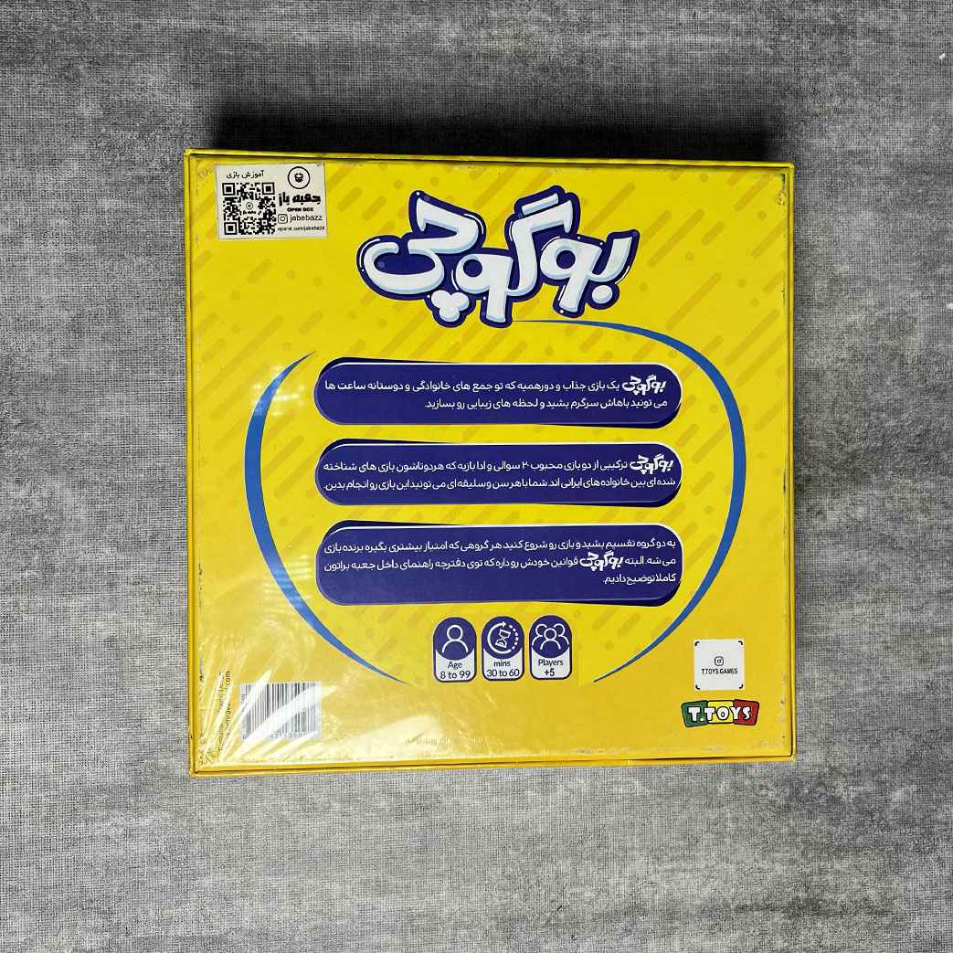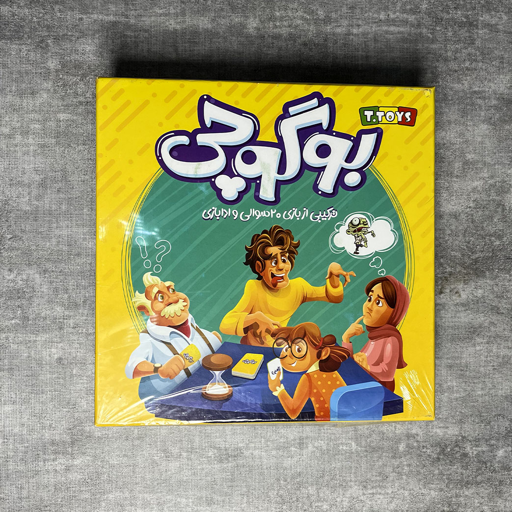 بوگوچی یک بازی جذاب و دورهمیه که تو جمعهای خانوادگی و دوستانه ساعتها میتونید باهاش سرگرم بشید و لحظههای زیبایی رو بسازید . بوگوچی ترکیبی از دو بازی محبوب 20 سوالی و ادا بازیه که هردوتاشون بازیهای شناخته شدهای بین خانوادههای ایرانیاند . شما با هر سن و سلیقهای میتونید این بازی رو انجام بدین . به دو گروه تقسیم بشید و بازی رو شروع کنید