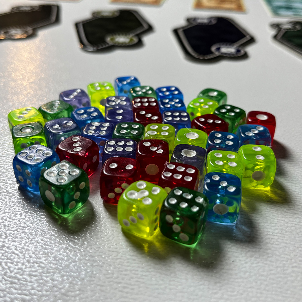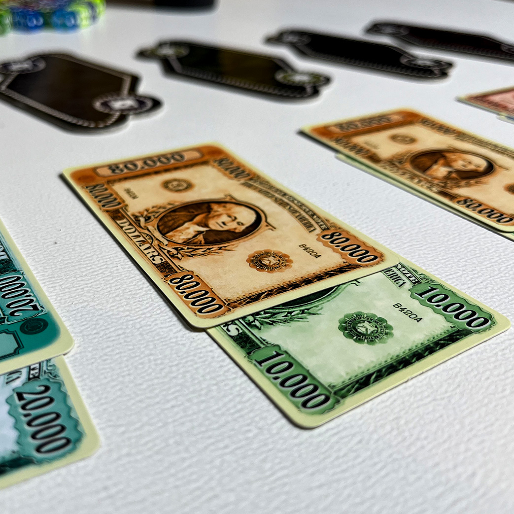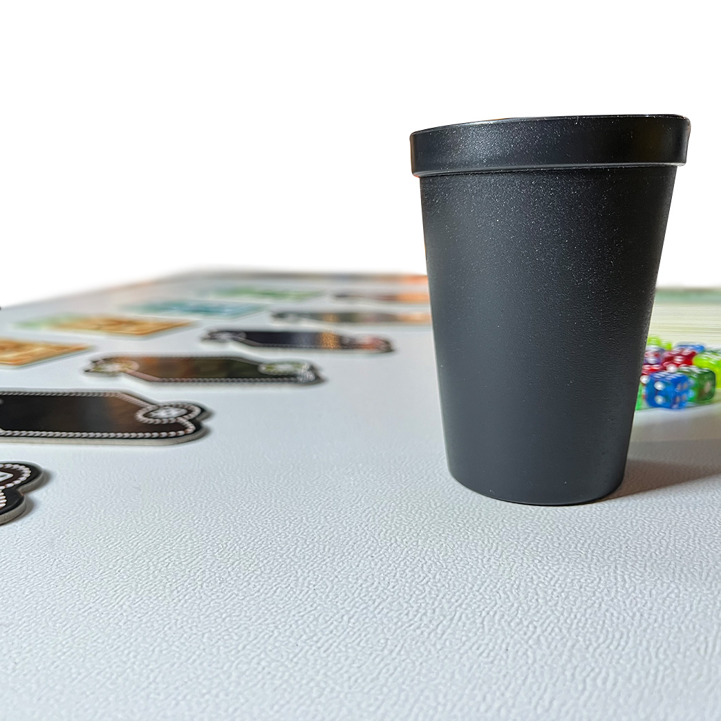 بازی فکری لاس وگاس هوشمندانه شرط بندی کنید تا با دست پر از لاس وگاس خارج شوید . شانس خود را در شش میز کازینو امتحان کنید و با غلبه بر حریفان خود پول های هر میز را از آن خود کنید. داستان بازی فکری لاس وگاس : بازیکنان در نقش قماربازان قهاری هستند که در دنیای پر زرق و برق لاس وگاس شانس خودشان را برای افزایش سرمایه خود امتحان میکنند . در هر دور از بازی تاس های خود را بریزید و تصمیم بگیرید آنها را برای کدام میز بازی می کنید. با داشتن بیشترین تاس در هر میز، پول های آن میز را بدست می آورید. در انتهای بازی بازیکنی که بیشترین پول را داشته باشد، برنده بازی است. اما مراقب باشید! بارها این رقابت بر سر بیشترین پول به درگیری کشیده شده است، تنها یک نفر است که از این درگیری با جیب پر و لب خندان خارج میشود. برنده بازی کسی است که بعد از گذشت چهار دور از بازی، بیشترین پول را به همراه داشته باشد. مشخصات و محتویات بازی فکری لاس وگاس : این بازی فکری جذاب برای 2 تا 5 بازیکن است و مناسب رده سنی +8 سال و مدت زمان برای انجام این بازی حدود 30 دقیقه است. 54 کارت اسکناس 6 تایل میز 40 عدد تاس 1 کیس تاس 1 لیوان برای تاس ریختن دفترچه قوانین بازی نحوه چینش بازی : تایلهای میز را به ترتیب عددشان مرتب کرده و در وسط میز بگذارید. 54 کارت پول را بر زده و به صورت یک دسته کارت، به پشت در کنار تایلهای میز قرار دهید; سپس دو کارت از دسته کارت برداشته و به رو مقابل خود قرار دهید. این عمل را ادامه دهید تا شش دسته کارت دوتایی داشته باشید. سپس دسته کارت با بیشترین ارزش ( مجموع دو کارت) را مقابل میز 6 قرار دهید. دسته کارت با بیشترین ارزش بعدی را مقابل میز شماره 5 قرار داده و این عمل را تا میز شماره 1 ادامه دهید. اگر مجموع ارزش دو دسته کارت یکسان بود، دسته کارتی که اسکناس با ارزشتری دارد اولویت دارد. اسکناسهای باقی مانده را به پشت به کنار بگذارید تا در دورهای بعدی از آنها استفاده کنید. نحوه انجام بازی : بازی در چهار دور انجام میشود، هر دور شامل چهار تا شش نوبت تاس ریختن به ازای تعداد بازیکنان میشود. بازیکن بزرگتر بازی را آغاز میکند و سپس بازیکنان به صورت ساعتگرد بازی را ادامه میدهد. در نوبت خود، تمام تاسهای باقیمانده خود را بریزد ( در نوبت اول هشت تاس و با گذست نوبتها کمتر و کمتر). برای اینکار تاسها را درون لیوان ریخته، لیوان را تکان دهید و تاسهایی که عدد انتخاب شده را نمایش میدهند را میز متناظر قرار دهید ( اگر در آن میز، از قبل تاسهای حریفان شام و یا حتی تاسهای خودتان وجود داشت باز میتوانید تاسهای خود را در آن میز قرار دهید). تاسهای باقی مانده خود را از محفظه تاس خارج کرده و لیوان را به همراه محفظه در اختیار بازیکن بعدی قرار دهید. بازیکنان بعدی مراحل را به همین شکل اجرا میکنند تا همه بازیکنان همه تاسهای خود را مصرف کنند.
