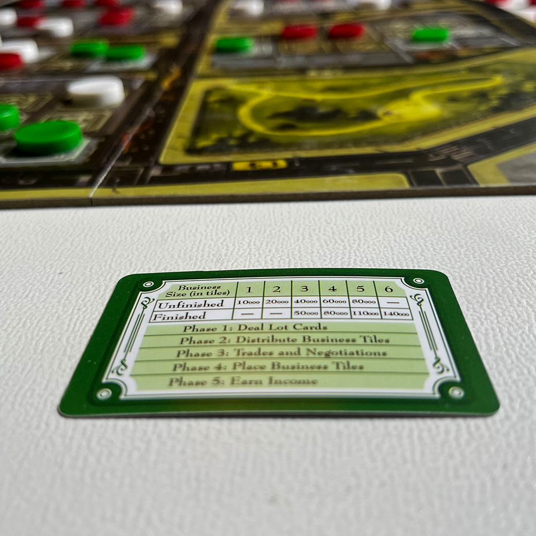 یک بازی با مکانیزم مذاکره و چانهزنی، به تمام معنا... در طول بازی، بازیکنان مالکیتِ مناطق مختلفی از شهر را به دست آورده و با گذاشتنِ کاشیهایی، آن مناطق را بهعنوان مناطقِ کاریِ خود اعلام میکنند. در پایانِ هر نوبت، هر کاشیای که شما در صفحه گذاشته باشید، امتیازاتی نصیبِ شما خواهد کرد ولی امتیازِ تجارتهای پیشرفته (تشکیلشده از سه تا شش کاشیِ هم سان) خیلی وسوسهکنندهتر است! البته منابع اوّلیه بهصورت اتّفاقی بین بازیکنان پخش شده و بازیکنان باید برای بهدست آوردنِ منابع و کاشیهای مورد نیازشان، باید دست به معامله بزنند.