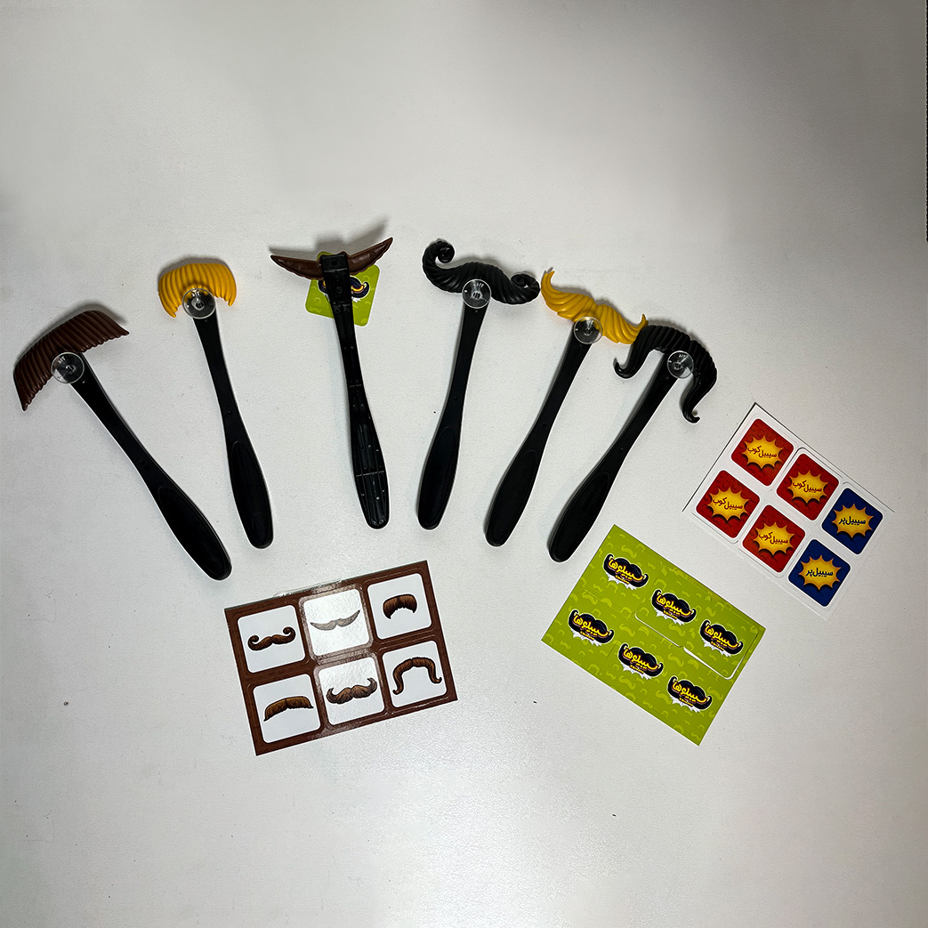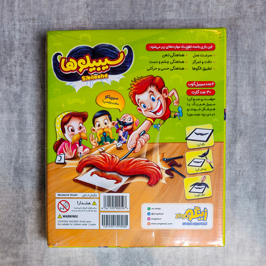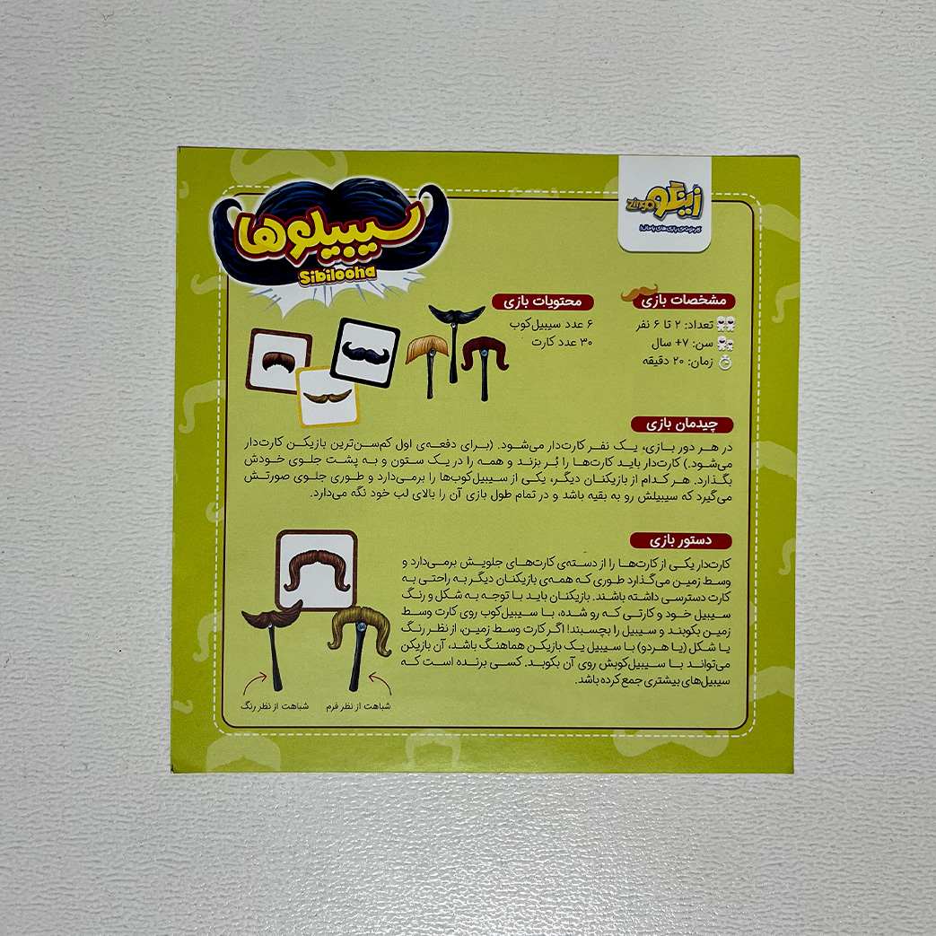 تو این بازی شش نفره، هر کی یه دونه سیبیل داره که باید روی صورتش بگیره. بعد ۳۲ تا هم کارت با عکس سیبیلهای مختلف و رنگهای متفاوت داره. یه نفر که بهش میگن فروشنده، همهی کارتها رو برمیداره و مسول این میشه که دونه دونه کارتها رو بندازه وسط.