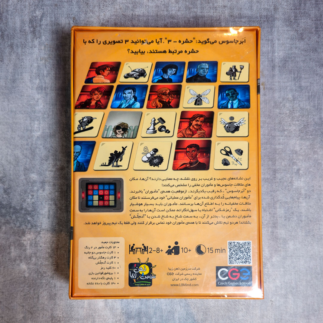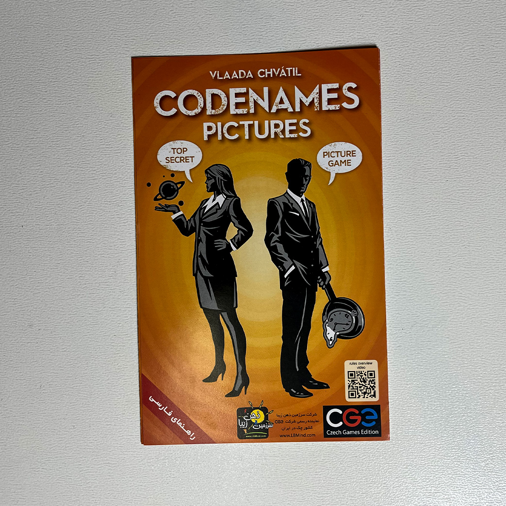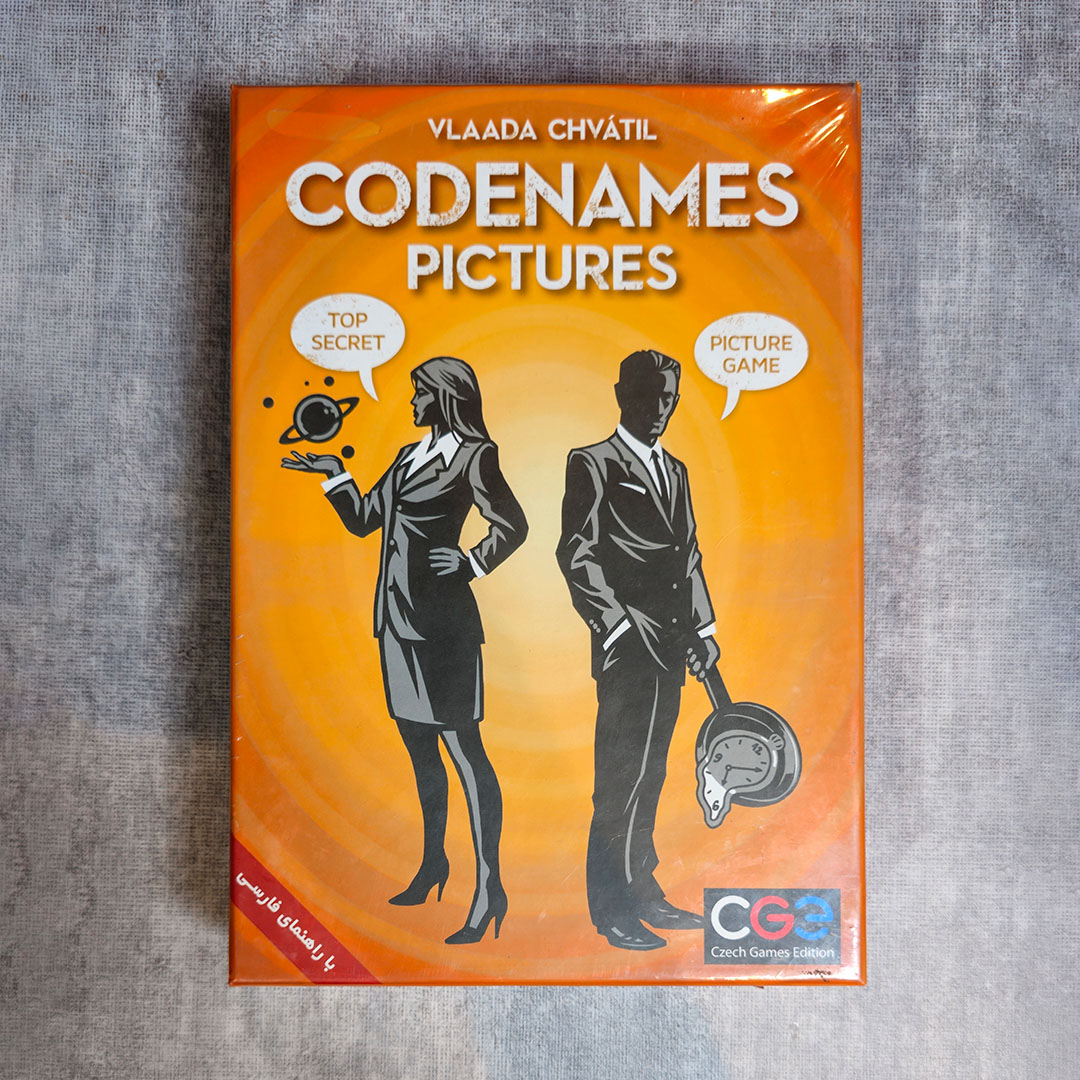 بازی فکری کدنیمز نسخه تصاویر (codenames pictures) یکی از قدیمی ترین و منحصر به فرد ترین شیوه های ارتباط بشر کلمات رمزي هستند! در یک موقعیت خاص امنیتی دو تیم نظامی منتظر هستند تا جاسوسان خود را از معرکه خارج کنند. هر تیم منتظر است تا مشخصات و موقعیت سوژه به او اعلام شود و فورا او را خارج کند..... اما صبر کنید یک جای کار می لنگد! تیم مقابل دارد بیسیم ما را شنود میکند! حالا راه حل چیست؟ بیان موقعیت سوژه با کلمات رمزی! بازی codenames یکی از شاهکارهای استاد بزرگ طراحی بازی vaada chvatil و دارنده رتبه اول در بین بازی های گروهی و دور همی در دنیا است. بازی گروهی و دورهمی یا پارتی گیم به بازی هایی گفته میشود که قوانین بسیار ساده داشته و طیف وسیعی از مردم جذب آن ها می شوند، تاکید اصلی آن ها بر جنبه لذت بردن و ایجاد نشاط و هیجان بوده و مناسب نفرات زیاد و مهمانی ها است. در این بازی بازیکنان به دو تیم قرمز و آبی تقسیم می شوند. هر تیم یک سرگروه دارد. سرگروه ها در کنار هم و در یک سمت میز و یاران سرگروه روبروی او و در سمت دیگر میز جای می گیرند. در وسط میز کارتهای بازی چیده میشوند که بیانگر جاسوسانی هستند که باید از موقعیت خارج شوند. روی هر کارت یک تصویر قرار دارد که می توان تعداد زیادی کلمه در مورد آن گفت. در سمت دیگر میز روبروی سر گروه ها یک کارت به شکل ایستاده قرار دارد که فقط برای دو سرگروه قابل مشاهده است و بیانگر موقعیت جاسوس های هر تیم، افراد خنثی و یک کارت قاتل است. هر سر گروه باید با گفتن یک کلمه رمز و یک عدد سعی کند موقعیت کارت های جاسوس تیم خود را به هم تیمی ها انتقال دهد. مثلا: گربه ۳! یعنی در سه تا از کارت ها شکلی وجود دارد که با گربه مرتبط است. در سمت دیگر تیم بازیکنان باید سعی کنند با توجه به پیام دریافتی از سرگروه کارت های مرتبط را شناسایی و جاسوس را فراری دهند. اگر کارت انتخابی صحیح باشد بازی ادامه پیدا کرده و در صورتی که اشتباه باشد نوبت به تیم مقابل است تا همین روند را تکرار کند. برنده بازی تیمی است که زودتر از تیم رقیب تمام جاسوس های خود را شناسایی نماید. البته هر تیمی که اشتباها کارت قاتل را شناسایی کند فورا بازنده است! برای انجام این ورژن بازی نیازی به زبان انگلیسی یا هیچ زبان دیگری ندارید! این بازی فقط از زبان تصاویر پیروی می کند و به شدت هوش تصویری و مفهومی شما را به چالش می کشد. اگر می خواهید برنده باشید باید تمام سعی خود را در مشاهده عمیق تصاویر و مفهوم ها و تبدیل آن ها به کلمات (و برعکس) انجام دهید. تصویر سازی کارت ها به دست یک تیم خبره از قوی ترین گرافیست ها و تصویر پردازان انجام پذیرفته و بازی با ایده ناب و قوانین ساده خود موفق می شود به راحتی جای خود را در دل هر مخاطبی با هر سن و سلیقه باز کرده و حس همکاری و رقابت بسیار قوی ایجاد نماید. در نهایت این بازی را به تمام افراد با هر سن و سلیقه توصیه میکنیم. مطمئن باشید با انجام آن مهمانی های شما رنگ و بوی متفاوتی خواهد گرفت و مدت ها پای ثابت میز شما خواهد بود.