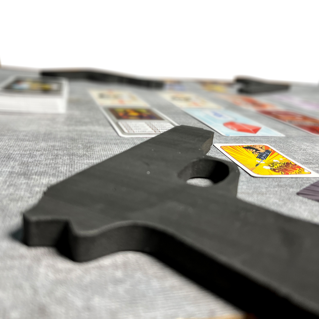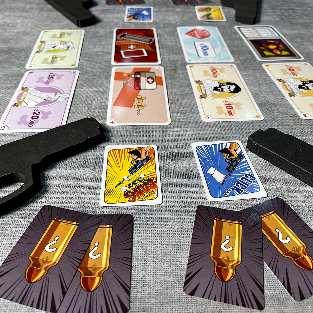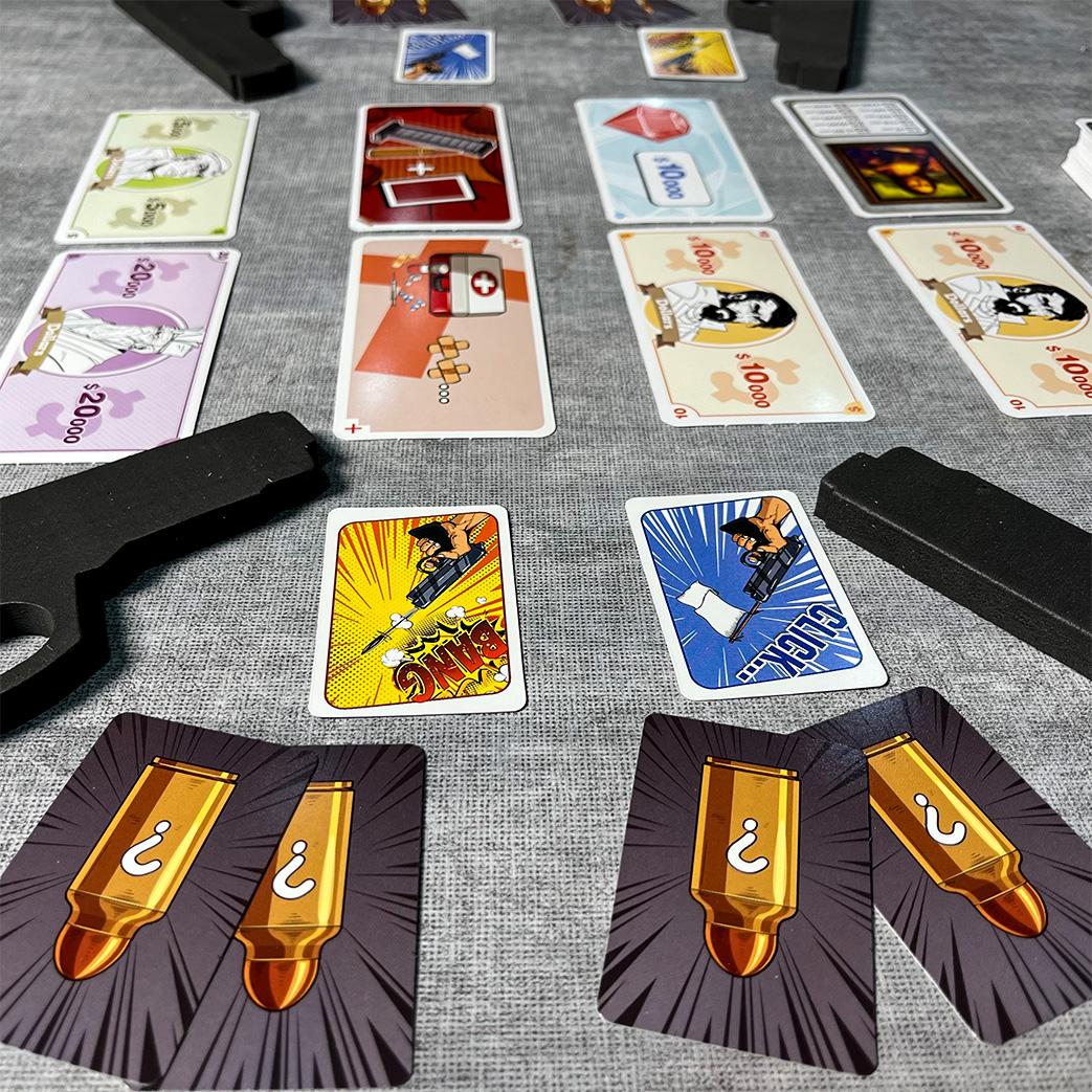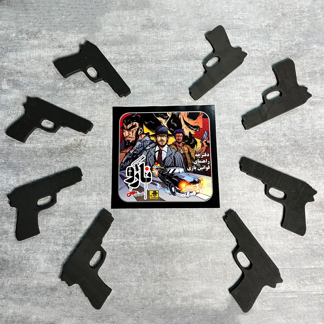 گروهی از تبهکاران در انباری متروکه در حال تقسیم پولهای دزدیشان هستند، اما هیچ راهی برای توافق پیدا نمیشود! زمان آن فرا رسیده که هرکس اسلحهاش را از غلاف خارج کرده و به سمت دیگران نشانه بگیرد! برنده کسی است که زنده مانده، و بیشترین امتیاز را جمع کند. در بازی فکری Cash n Guns (نارو) میتوانید سکانسهای هیجانانگیز فیلمهای سینمایی را در فضایی واقعی تجربه کنید. هدف در بازی رومیزی نارو این است که پس از ۸ دور بازی، بیشترین پول را جمع کرده و همچنان زنده مانده باشید. در بازی رومیزی جذاب نارو (Cash and Guns) در هر دور، یکی از بازیکنان نقش رئیس را بازی کرده و جریان بازی و تقسیم پولها را کنترل میکند. در هر دور، ابتدا کارتهای پول رو شده، تا مشخص شود چه گزینههایی در دسترس است. سپس بازیکنها اسلحهی خود را مخفیانه با یکی از کارتهای Bang یا Click مسلح میکنند. پس از آن، رئیس تا سه میشمارد، و هر کس اسلحه خود را به سمت یکی دیگر از بازیکنها نشانه میگیرد. بسته به شرایط، رئیس این امکان را دارد که به یکی از بازیکنان که به سمت او نشانه رفته است، دستور دهد که شخص دیگری را هدف بگیرد. پس از مدت کوتاهی که هر کدام از بازیکنها شرایط بازی و جدیت تصمیم کسانی که به سمت آنها نشانه رفتهاند را بررسی کردند، رئیس دوباره تا سه میشمرد. پس از اعلام شمارهی سه، هر کس با نگه داشتن یا سرنگون کردن آدمک خود، باید اعلام کند که به این دور از بازی ادامه میدهد یا خیر. در صورتی که کسی به سمت شما نشانه رفته باشد، و قصد ادامهی بازی را داشته باشید، باید ریسک پر بودن اسلحهی حریف، و اصابت گلولهاش به خودتان را در نظر بگیرید! هرکس که اسلحهاش را به سمت یکی از بازیکنان باقیمانده نشانه رفته است، کارت خود را رو میکند. اگر کارت اسلحهاش Bang باشد، نفر مقابل یک کارت جراحت گرفته و در تقسیم پولهای این دور شرکت نخواهد کرد. سپس، با شروع از رئیس، تمام بازیکنهای باقیمانده در جهت عقربههای ساعت هر کدام یکی از کارتهای پول روی میز را که ممکن است شامل پول نقد، الماس، تابلوی نقاشی، جایگاه رئیس در دور بعد، التیام جراحت، یا گلوله باشد، انتخاب کرده و جلوی خود قرار میدهند. این کار تا زمانی که هیچ کارت پولی روی میز باقی نمانده باشد، ادامه مییابد. بازی فکری و هیجان انگیز نارو پس از هشت دور، به پایان میرسد. بازیکنی که بیشترین الماس را جمع کرده، امتیاز اضافهای دریافت میکند. همچنین، تابلوهای نقاشی، بسته به تعداد جمعآوری شده به صورت تصاعدی امتیاز خواهند داشت. در نهایت بازیکنی که بیشترین امتیاز را جمع کرده باشد، برندهی بازی خواهد بود. بردگیم نارو از جمله بازیهای سبک مهمانی (Party) است. همچنین، مکانیزمهای Player Elimination و Simultaneous Action Selection از مکانیزمهای اصلی این Board Game هستند. مکانیزم Variable Player Powers نیز در این بازی رومیزی به دلیل قدرتهای متفاوتی که هر کدام از شخصیتها دارند، به جذابیت بازی افزوده است.